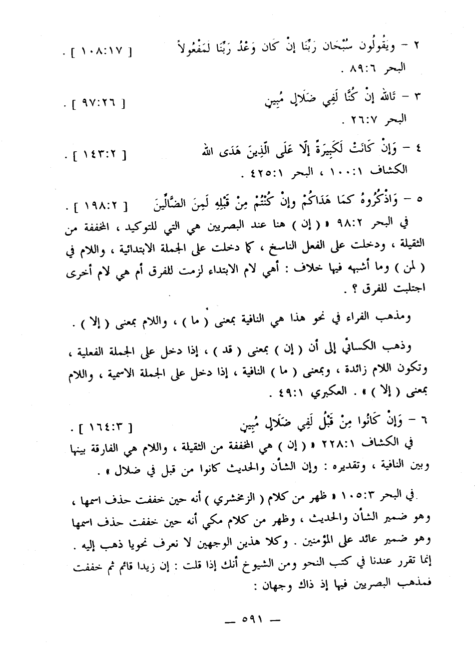 في البحر 2: 98 «[إن] هنا عند البصريين هي التي للتوكيد، المخففة من الثقيلة، ودخلت على الفعل الناسخ، كما دخلت على الجملة الابتدائية، واللام في [لمن] وما أشبهه فيها خلاف: أهي لام الابتداء لزمت للفرق أم هي لام أخرى اجتلبت للفرق؟.