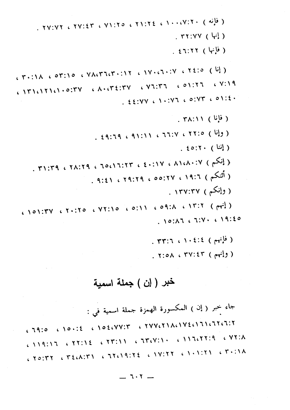 [إنا] 5: 24، 7: 60، 170، 12: 30، 36، 78، 15: 53، 18: 30، 19: 7، 26: 51، 36: 76، 37: 34، 80، 37: 105، 121، 131، 40: 51، 73: 5، 76: 10، 77: 44.