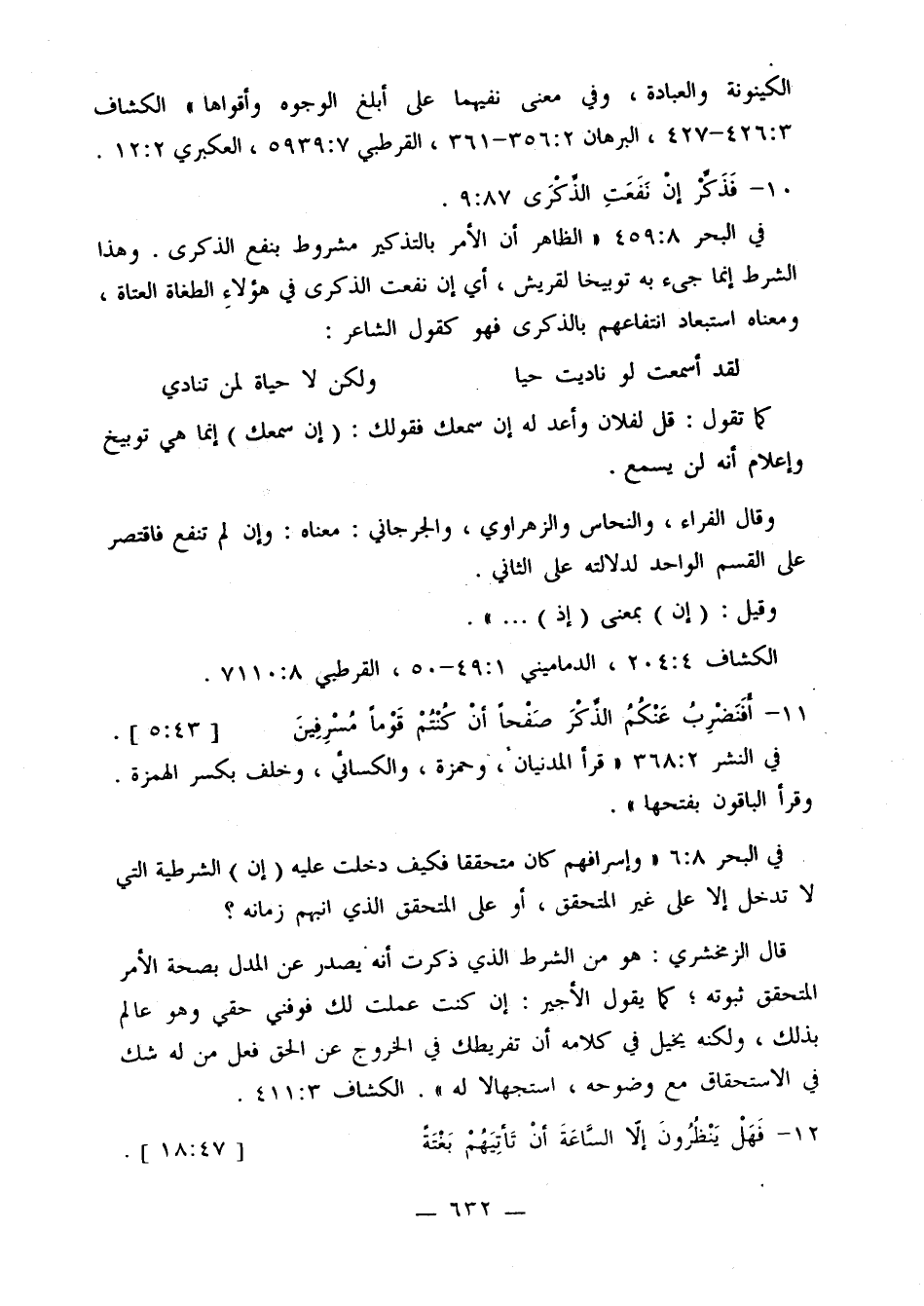 في البحر 8: 6 «وإسرافهم كان متحققا فكيف دخلت عليه [إن] الشرطية التي لا تدخل إلا على غير المتحقق، أو على المتحقق الذي انبهم زمانه؟