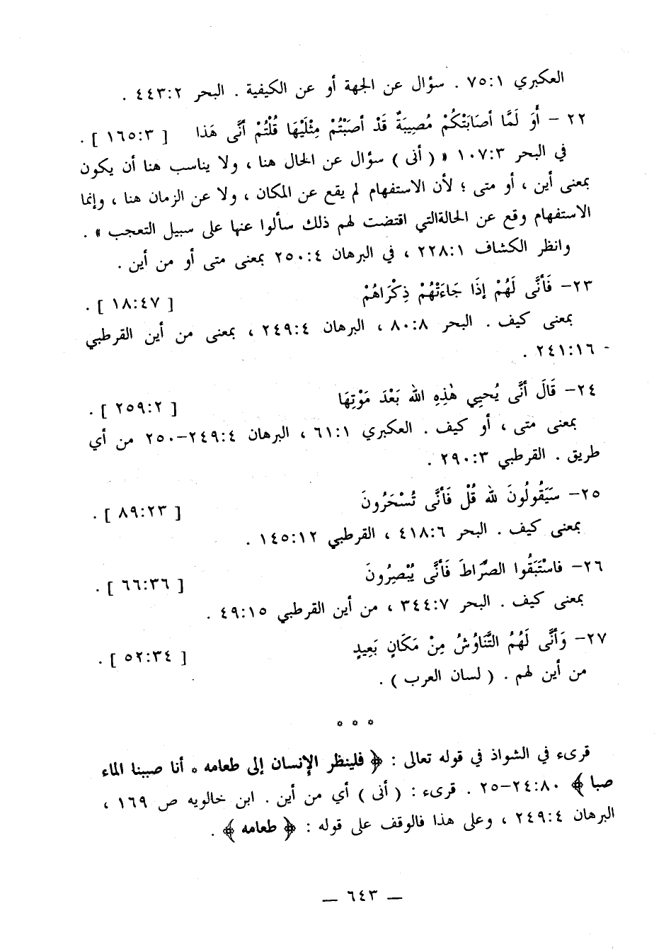 العكبري 1: 75. سؤال عن الجهة أو عن الكيفية. البحر 2: 443.