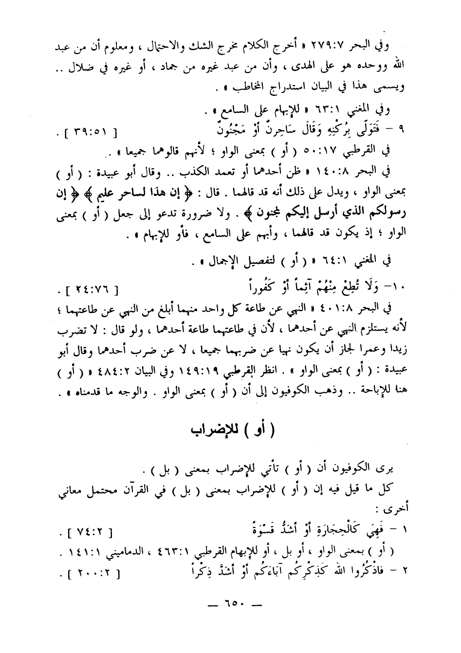 كل ما قيل فيه إن [أو] للإضراب بمعنى [بل] في القرآن محتمل معاني أخرى: