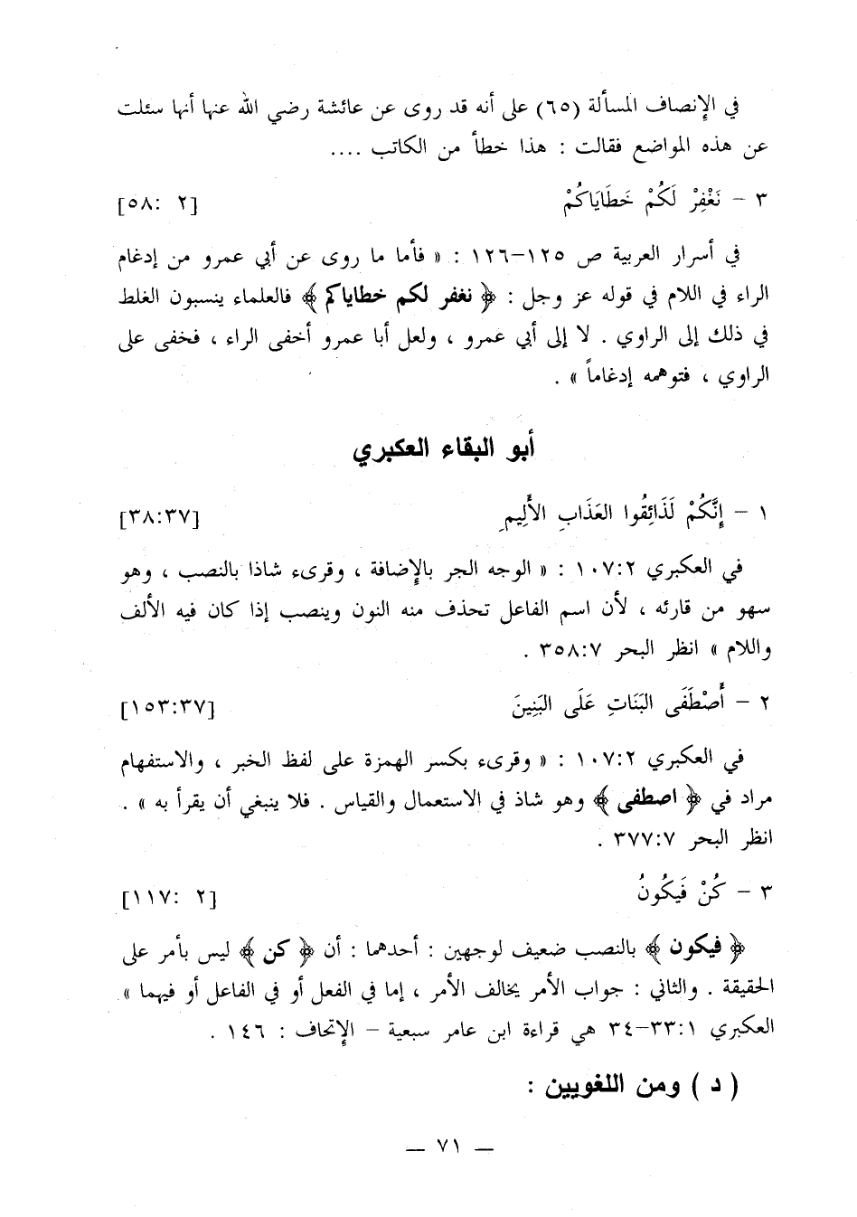 في الإنصاف المسألة (65) على أنه قد روى عن عائشة رضي الله عنها أنها سئلت عن هذه المواضع فقالت: هذا خطأ من الكاتب ...