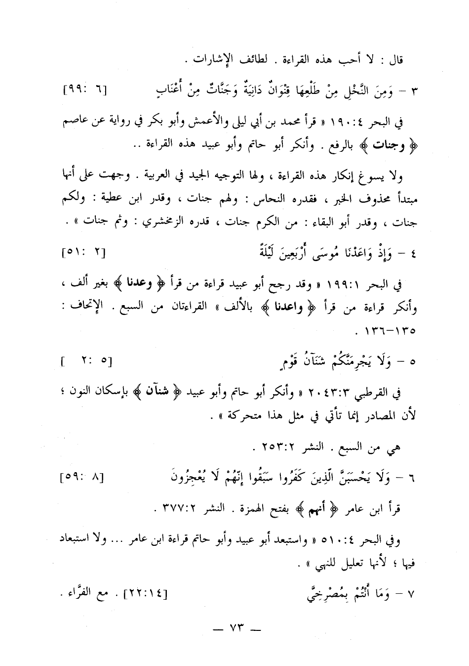 قال: لا أحب هذه القراءة. لطائف الإشارات.