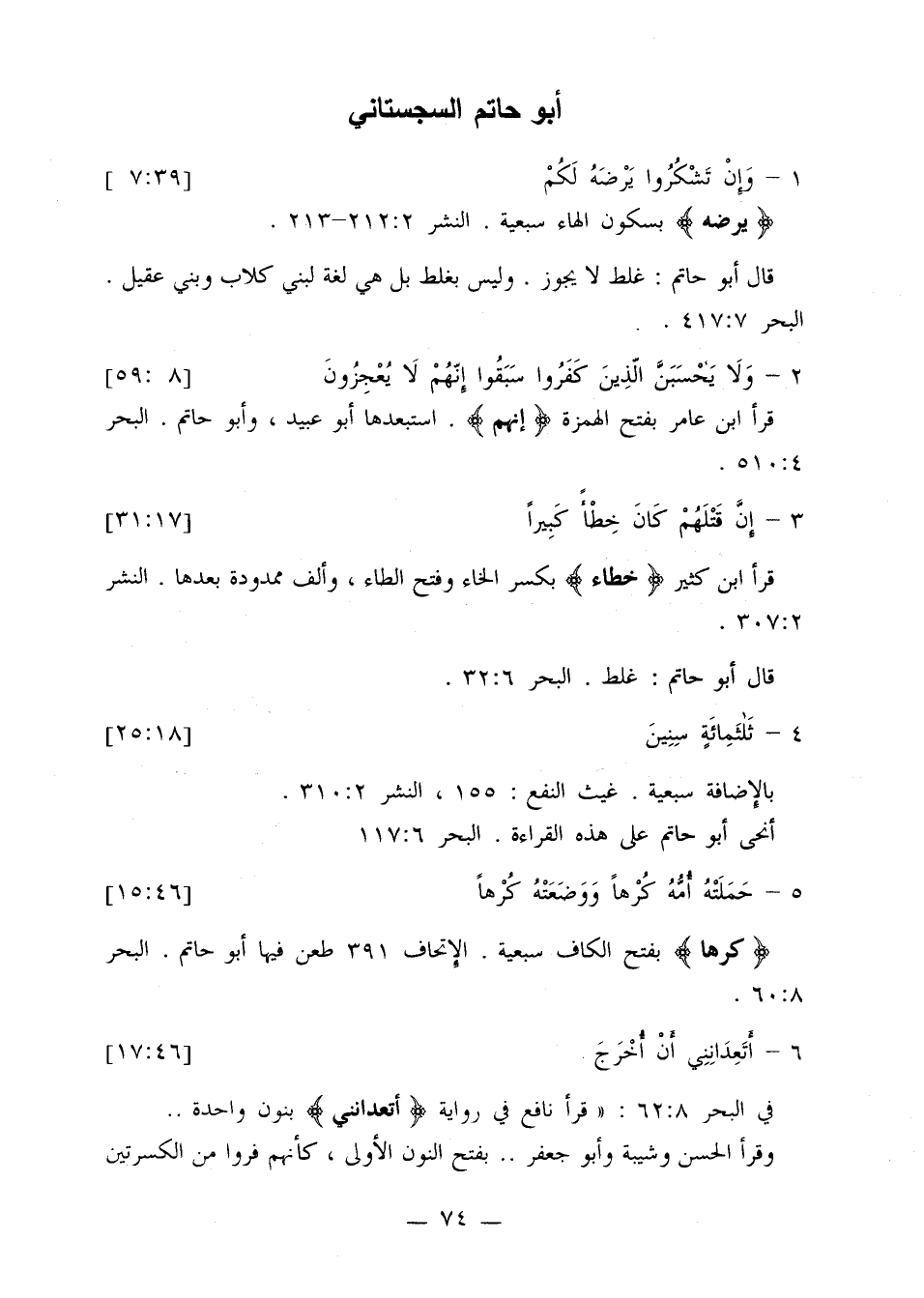 أنحى أبو حاتم على هذه القراءة. البحر 6: 117.