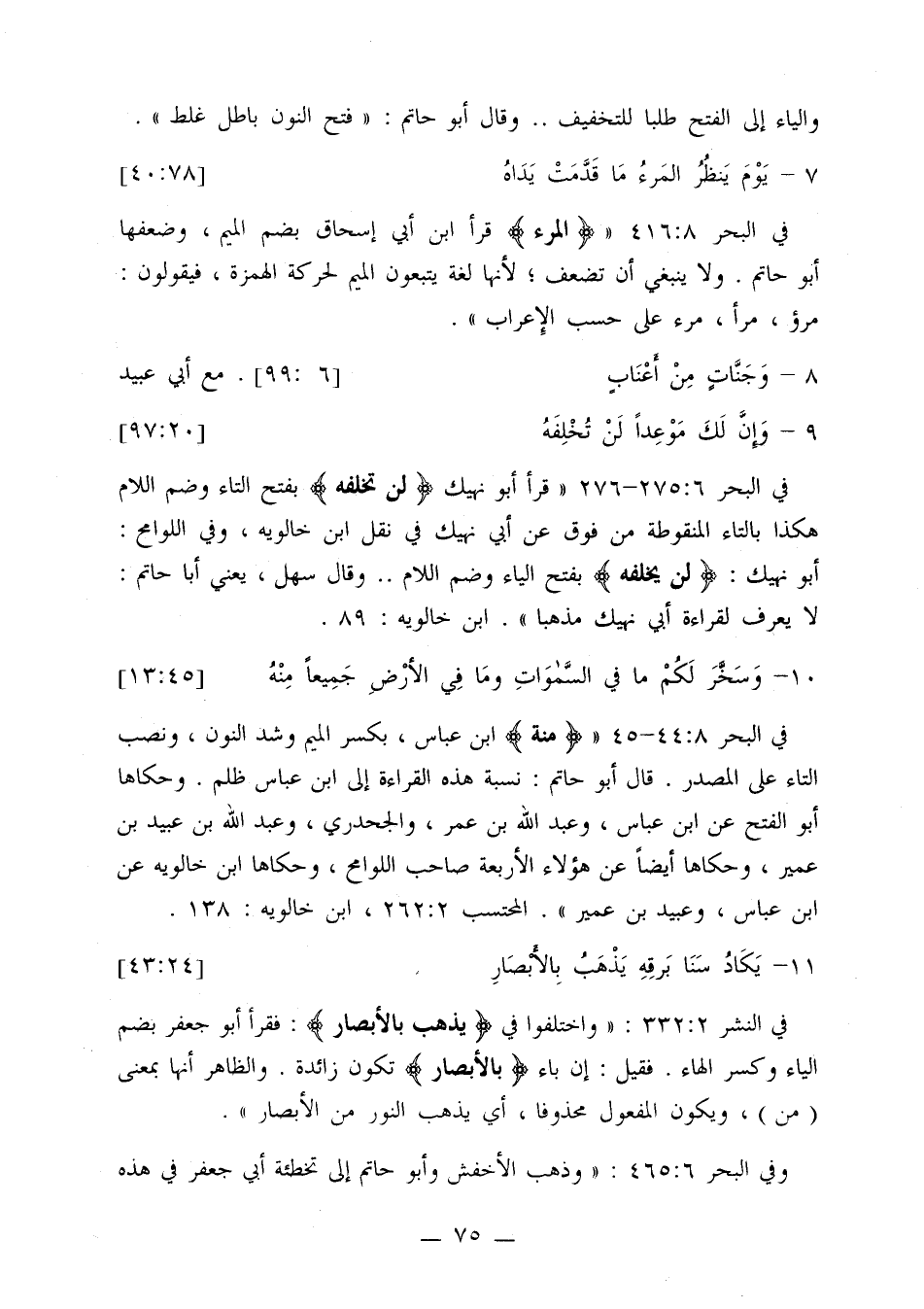 وفي البحر 6: 465: «وذهب الأخفش وأبو حاتم إلى تخطئة أبي جعفر في هذه