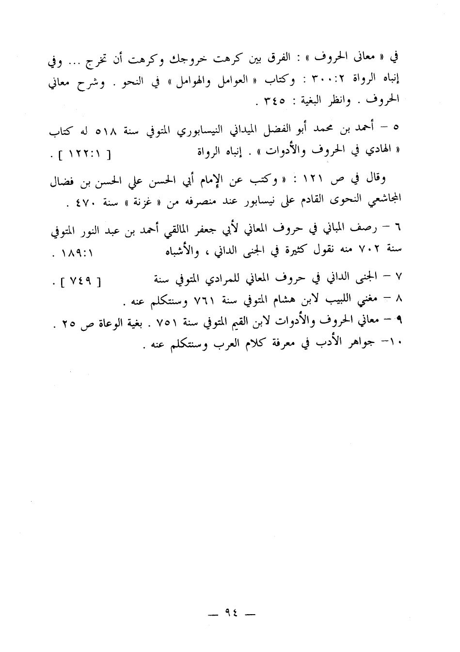 9 - معاني الحروف والأدوات لابن القيم المتوفي سنة 751. بغية الوعاة ص 25.