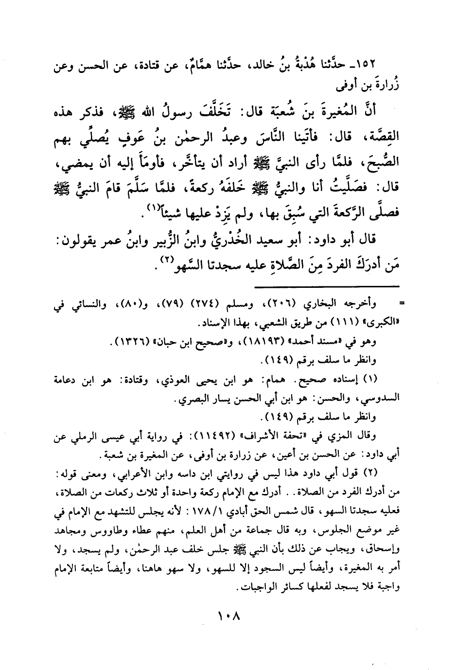 ١٥٢ - حدَّثنا هُدبةُ بنُ خالد، حدَّثنا همَّامٌ، عن قتادة، عن الحسن وعن زُرارةَ بن أوفى