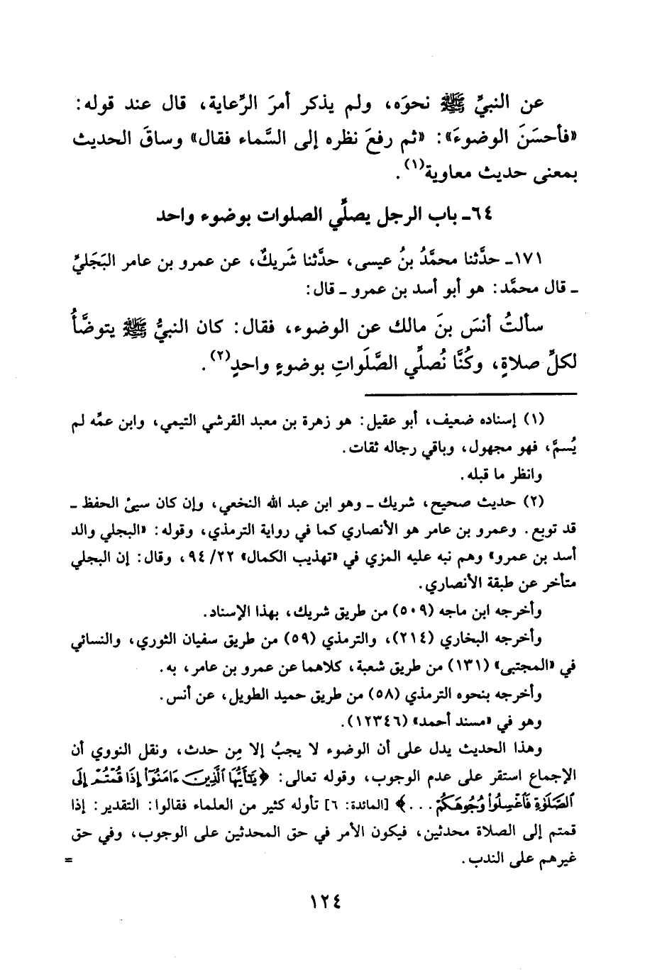 ٦٤ - باب الرجل يصلِّي الصلوات بوضوء واحد