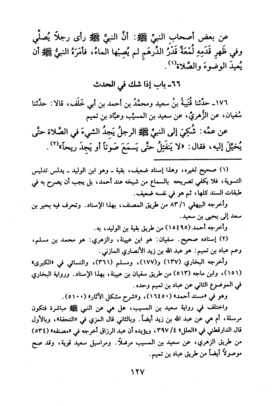 ١٧٦ - حدَّثنا قُتَيبةُ بنُ سعيد ومحمَّدُ بن أحمد بن أبي خَلَف، قالا: حدَّثنا سُفيان، عن الزُّهريِّ، عن سعيد بن المسيب وعبَّاد بن تميم