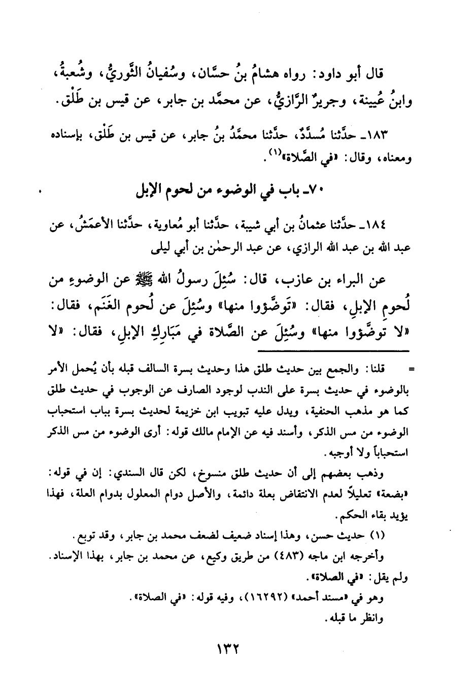 قال أبو داود: رواه هشامُ بنُ حسان، وسُفيانُ الثَّوريُّ، وشُعبةُ، وابنُ عُيينة، وجريرٌ الرَّازيُّ، عن محمّد بن جابر، عن قيس بن طَلْق.