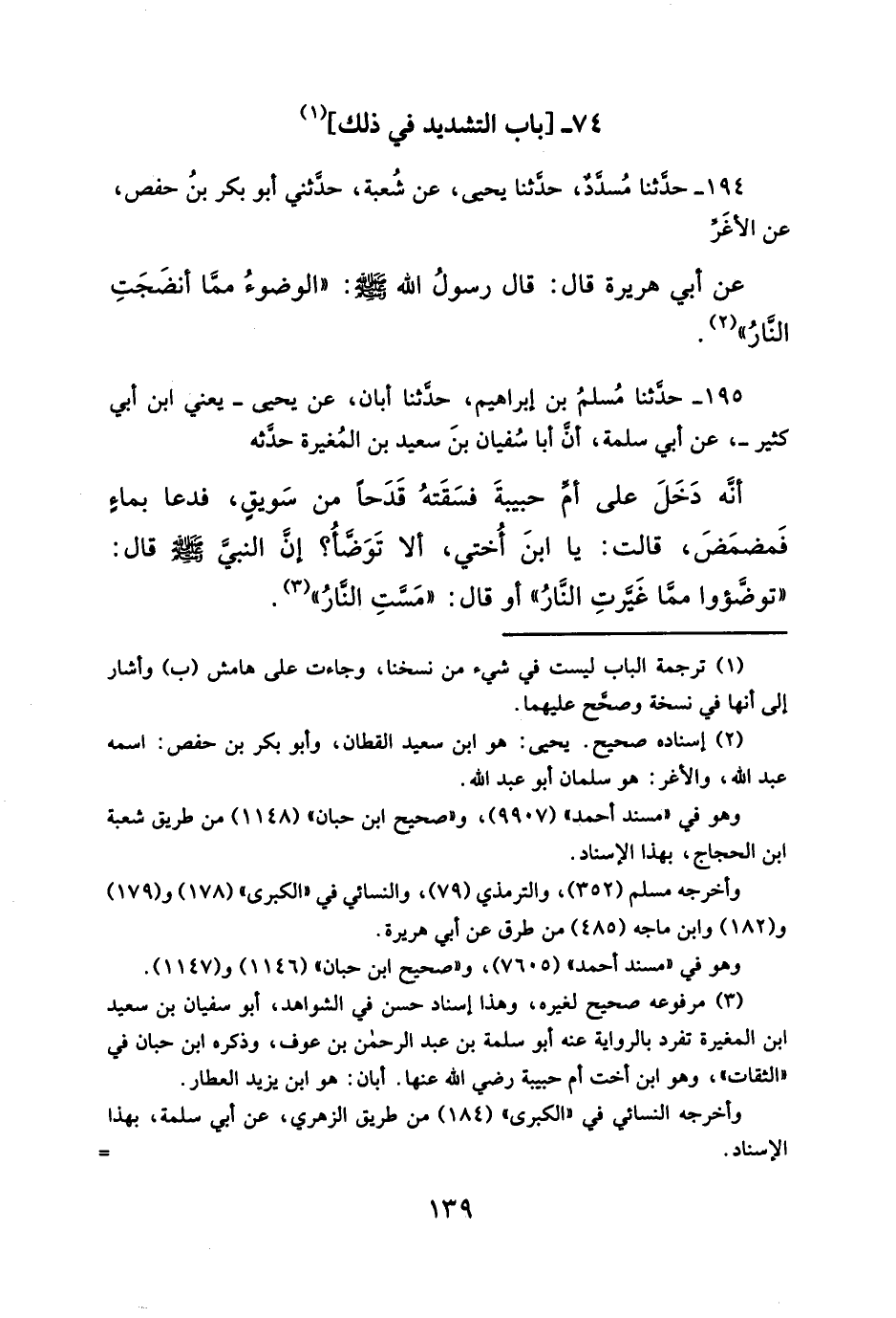 ١٩٥ - حدَّثنا مُسلمُ بن إبراهيم، حدَّثنا أبان، عن يحيى -يعني ابن أبي كثير-، عن أبي سلمة، أنَّ أبا سُفيان بنَ سعيد بن المُغيرة حدَّثه