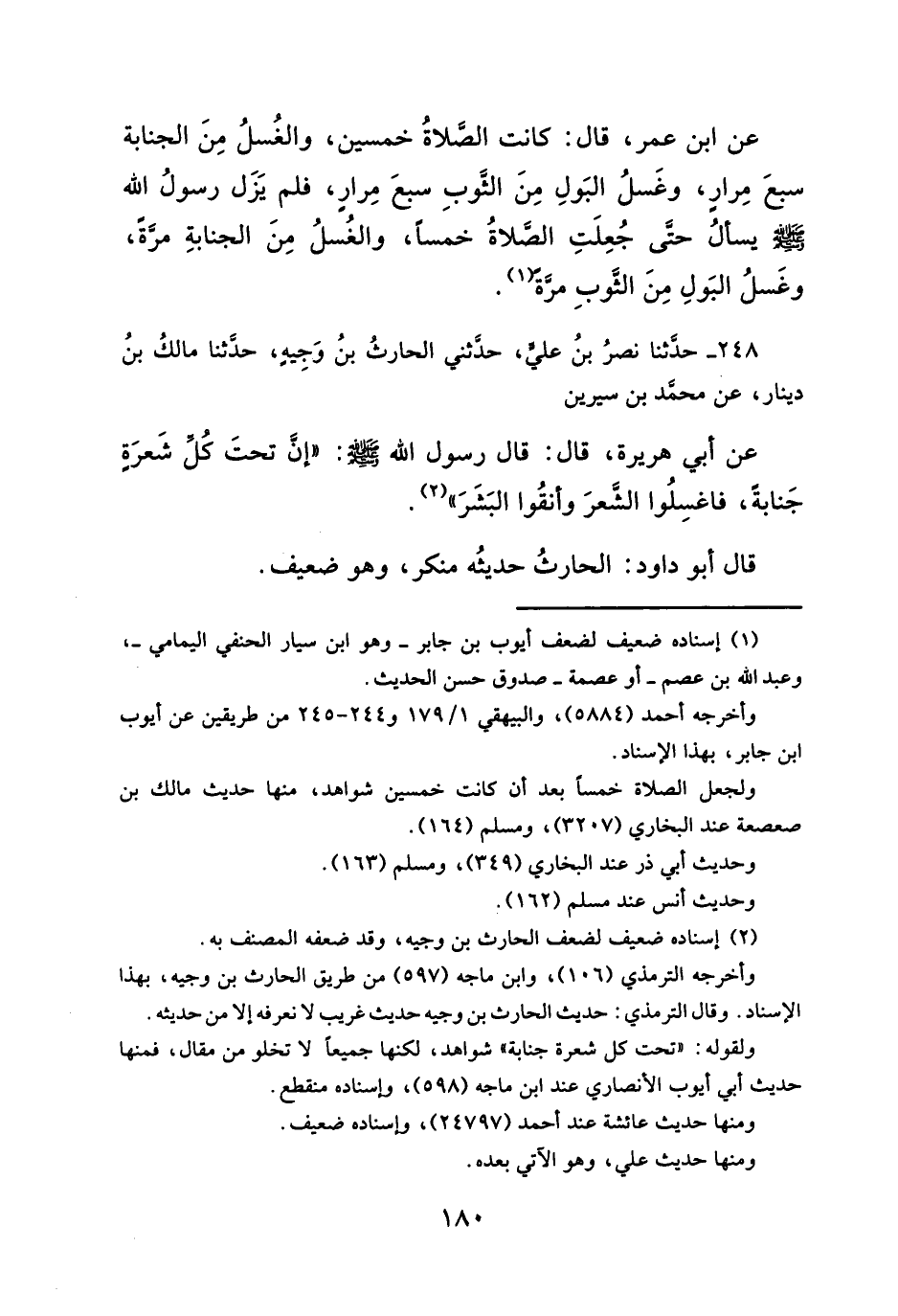 ولقوله: "تحت كل شعرة جنابه" شواهد، لكنها جميعاً لا تخلو من مقال، فمنها حديث أبي أيوب الأنصاري عند ابن ماجه (٥٩٨)، وإسناده نقطع.