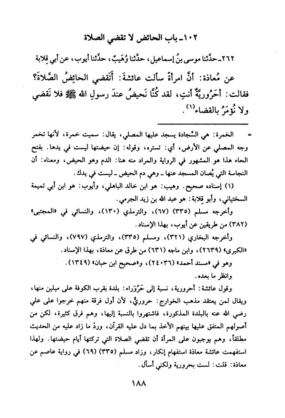 ١٠٢ - باب الحائض لا تقضي الصلاة