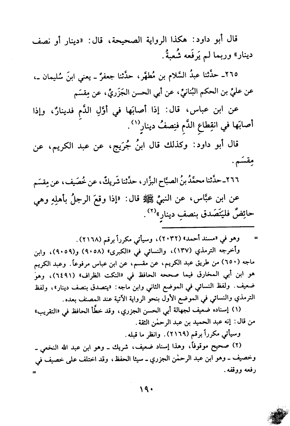 ٢٦٦ - حدَّثنا محمّد بنُ الصبَّاح البزَّار، حدَّثنا شَريكٌ، عن خُصَيف، عن مِقسَم