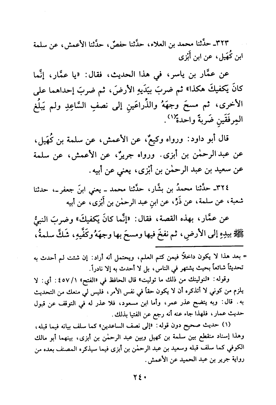 (¬١) حديث صحيح دون قوله: "إلى نصف الساعدين" كما سلف بيانه فيما قبله، وهذا إسناد منقطع بين سلمة بن كهيل وبين عبد الرحمن بن أبزى، بينهما أبو مالك الكوفي كما سلف قبله وسعيد بن عبد الرحمن بن أبزى فيما سيذكره المصنف بعده من رواية جرير بن عبد الحميد عن الأعمش.
