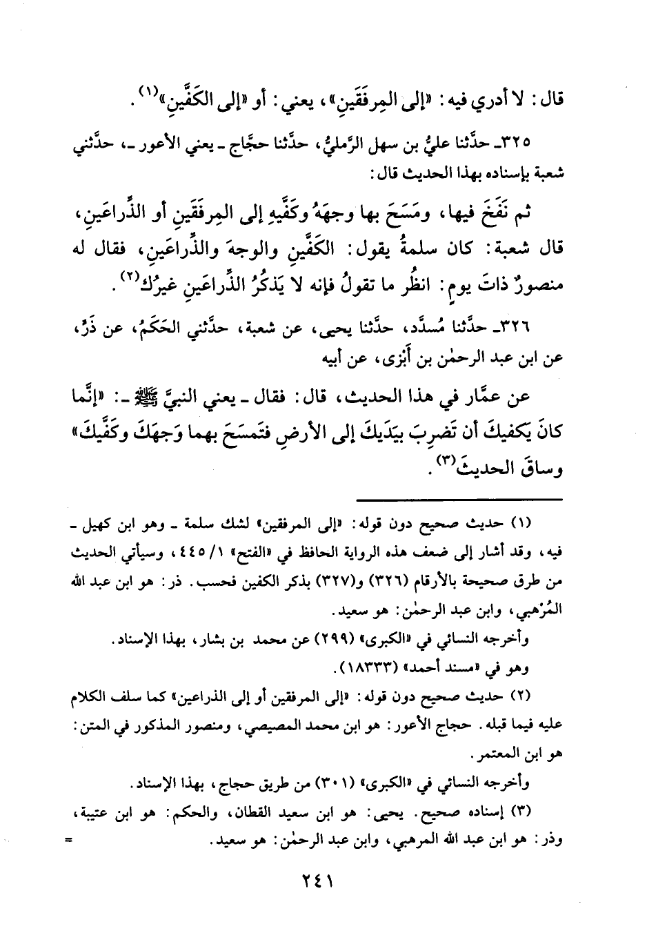 (¬٢) حديث صحيح دون قوله: "إلى المرفقين أو إلى الذراعين" كما سلف الكلام عليه فيما قبله. حجاج الأعور: هو ابن محمَّد المصيصي، ومنصور المذكور في المتن: هو ابن المعتمر.