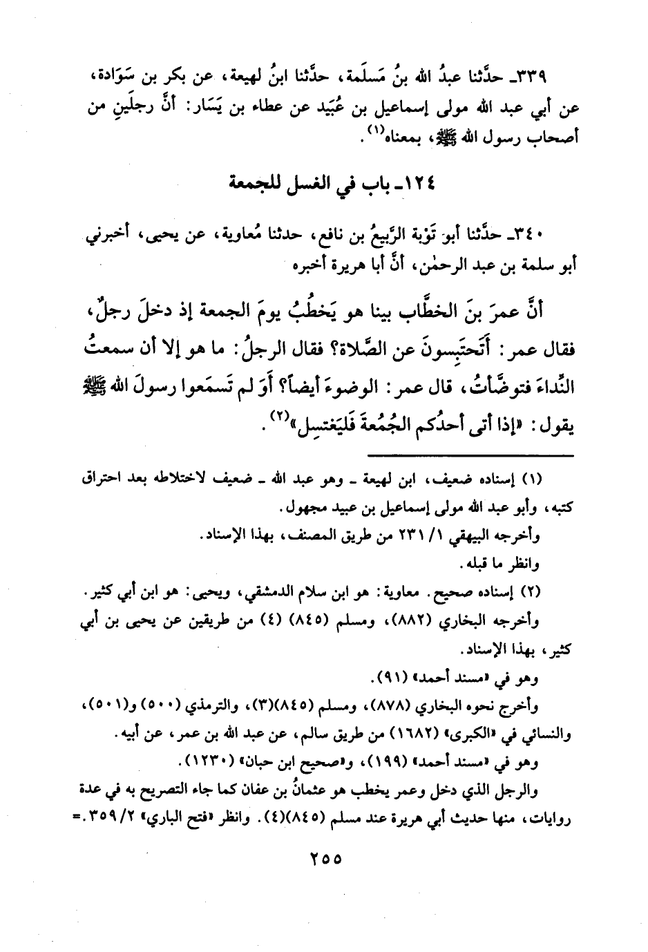 ٣٣٩ - حدَّثنا عبدُ الله بنُ مَسلَمة، حدَّثنا ابنُ لهيعة، عن بكر بن سَوَادة، عن أبي عبد الله مولى إسماعيل بن عُبَيد عن عطاء بن يَسَار: أنَّ رجلَينِ من أصحاب رسول الله - صلى الله عليه وسلم -، بمعناه (¬١).