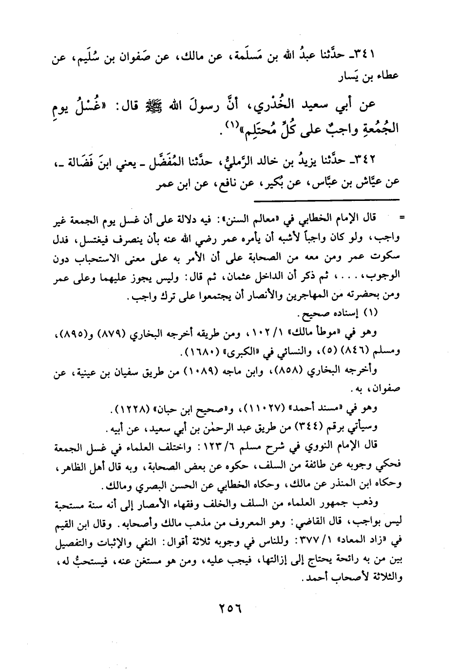 عن أبي سعيد الخُدْري، أنَّ رسولَ الله - صلى الله عليه وسلم -قال: "غُسْلُ يومِ الجُمُعةِ واجب على كُلِّ مُحتَلِم" (¬١).