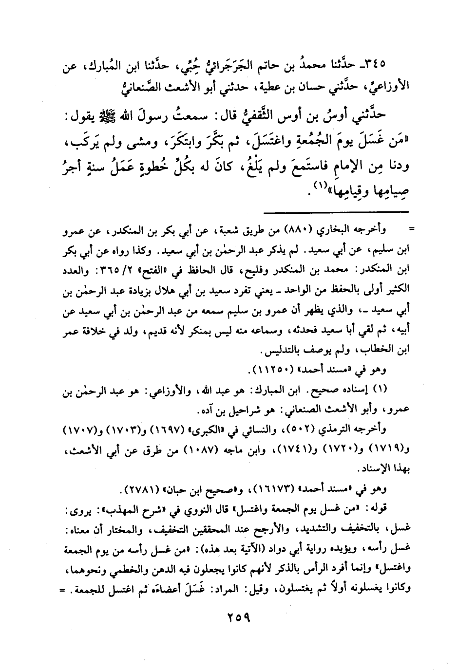 ٣٤٥ - حدَّثنا محمَّدُ بن حاتم الجَرَجَرائي حُبِّي، حدَّثنا ابن المُبارك، عن الأوزاعي، حدّثني حسان بن عطية، حدَّثني لبو الأشعث الصنعاني