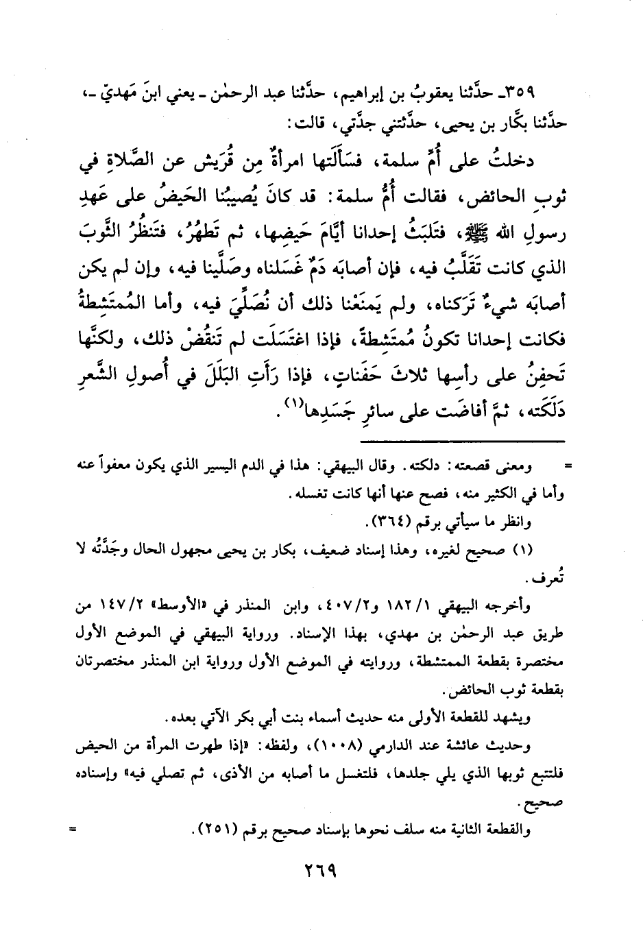 ٣٥٩ - حدَّثنا يعقوبُ بن إبراهيم، حدَّثنا عبد الرحمن -يعني ابنَ مَهدي-، حدَّثنا بكَّار بن يحيى، حدَثتني جدَّتي، قالت:
