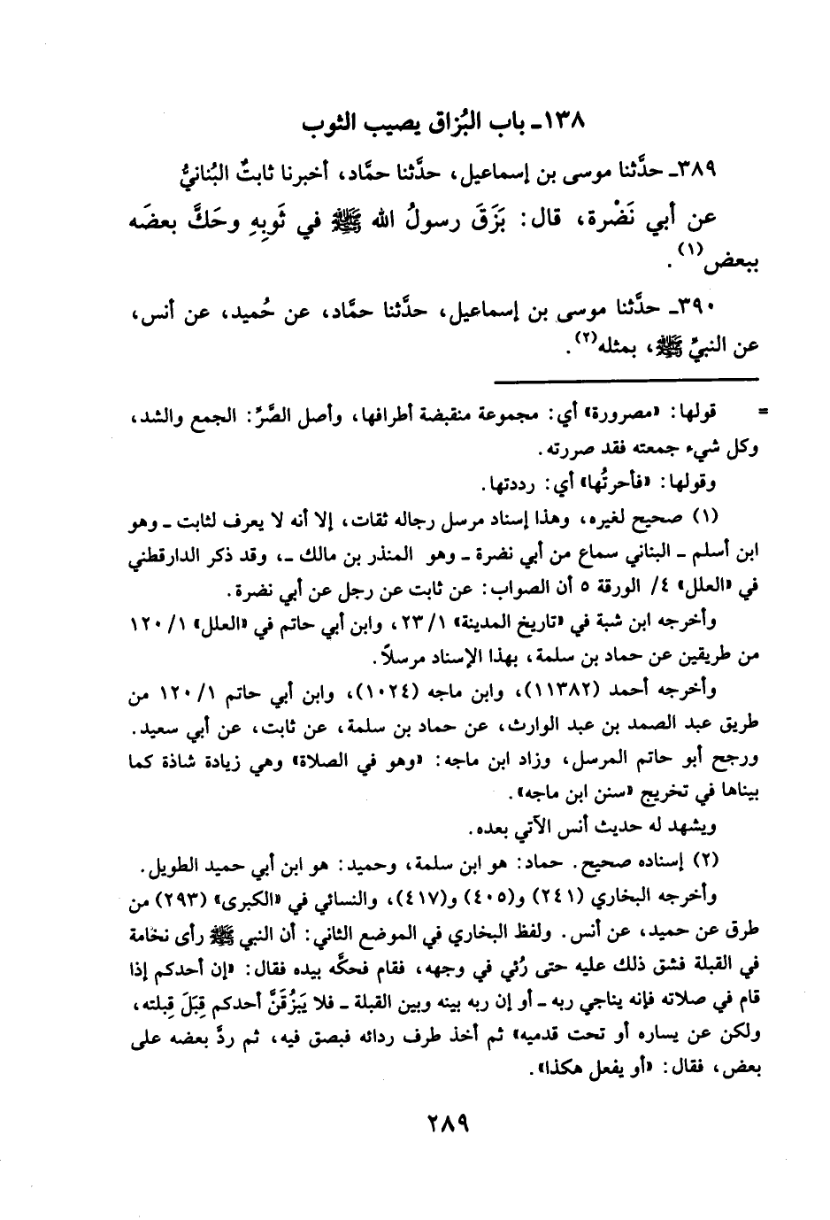 ٣٨٩ - حدَّثنا موسى بن إسماعيل، حدَّثنا حمّاد، أخبرنا ثابتٌ البُنانيُّ