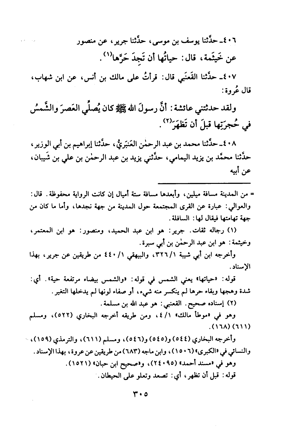 ٤٠٧ - حدَّثنا القَعنَبي قال: قرأتُ على مالك بن أنس، عن ابن شهاب، قال عُروة: