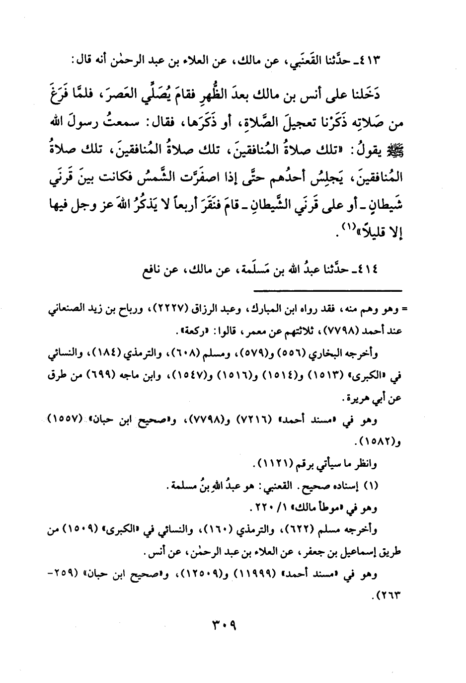 ٤١٣ - حدَّثنا القَعنَبي، عن مالك، عن العلاء بن عبد الرحمن أنه قال:
