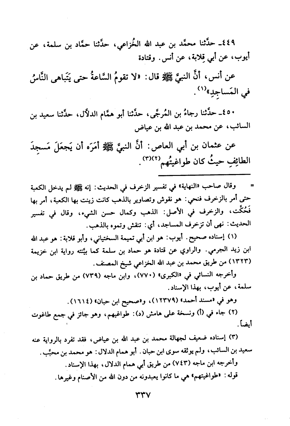 ٤٤٩ - حدَّثنا محمَّد بن عبد الله الخُزاعي، حدَّثنا حمَّاد بن سلمة، عن أيوب، عن أبي قِلابة، عن أنس. وقتادة