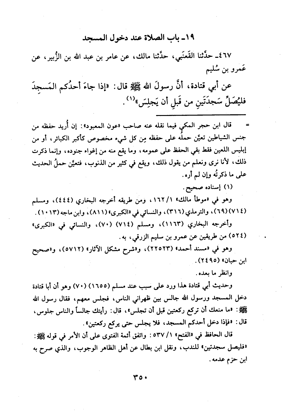 ٤٦٧ - حدَّثنا القَعنَبي، حدَّثنا مالك، عن عامر بن عبد الله بن الزُّبير، عن عَمرو بن سُليم