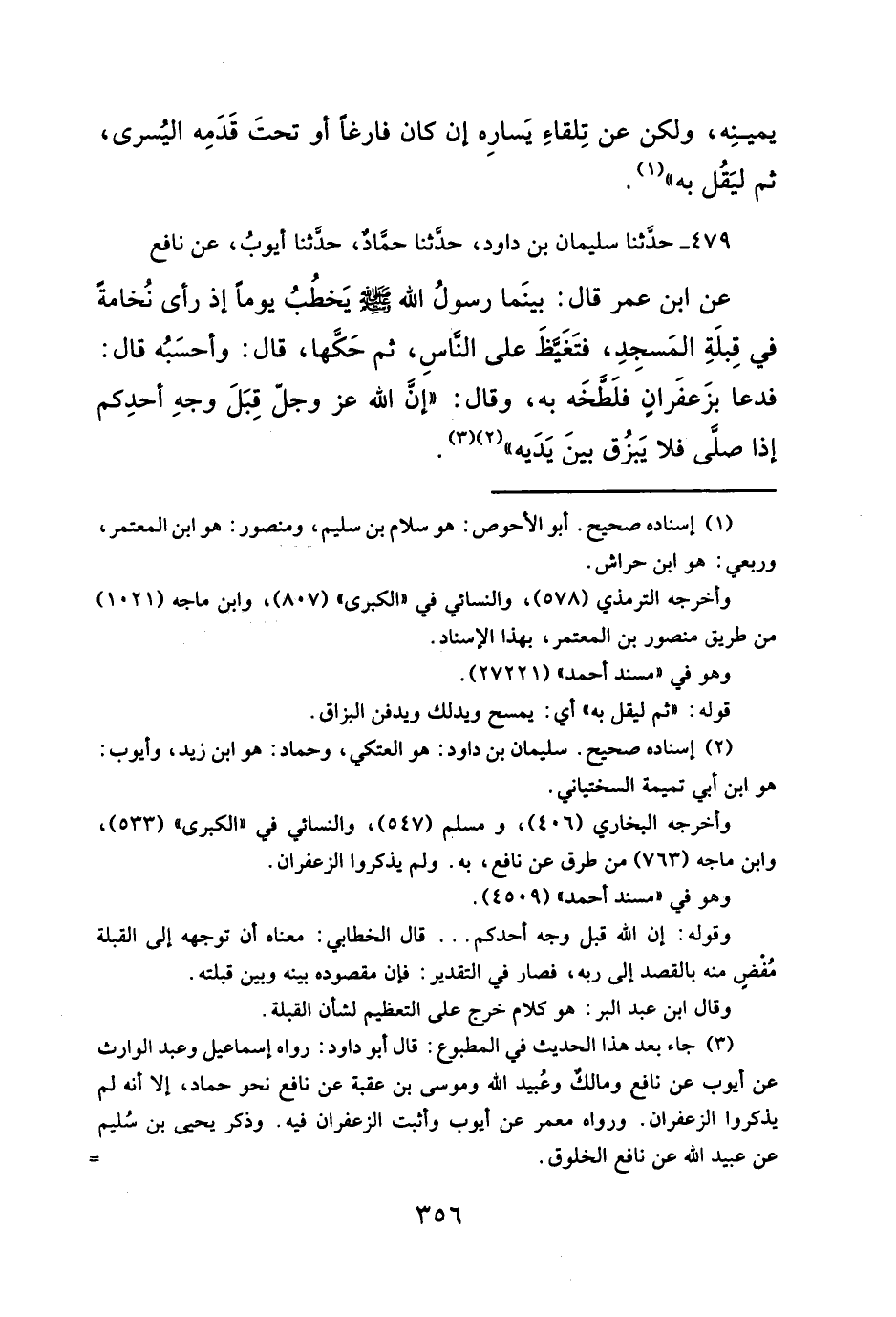 ٤٧٩ - حدَّثنا سليمان بن داود، حدَّثنا حماد، حدَّثنا أيوبُ، عن نافع