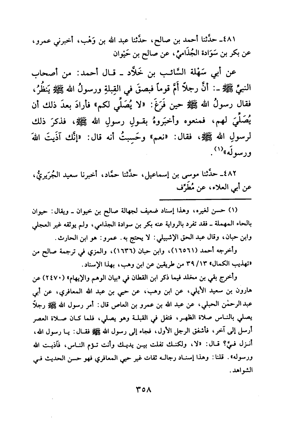٤٨١ - حدَّثنا أحمد بن صالح، حدَّثنا عبد الله بن وَهْب، أخبرني عمرو، عن بكر بن سَوَادة الجُذَاميِّ، عن صالح بن حَيْوان