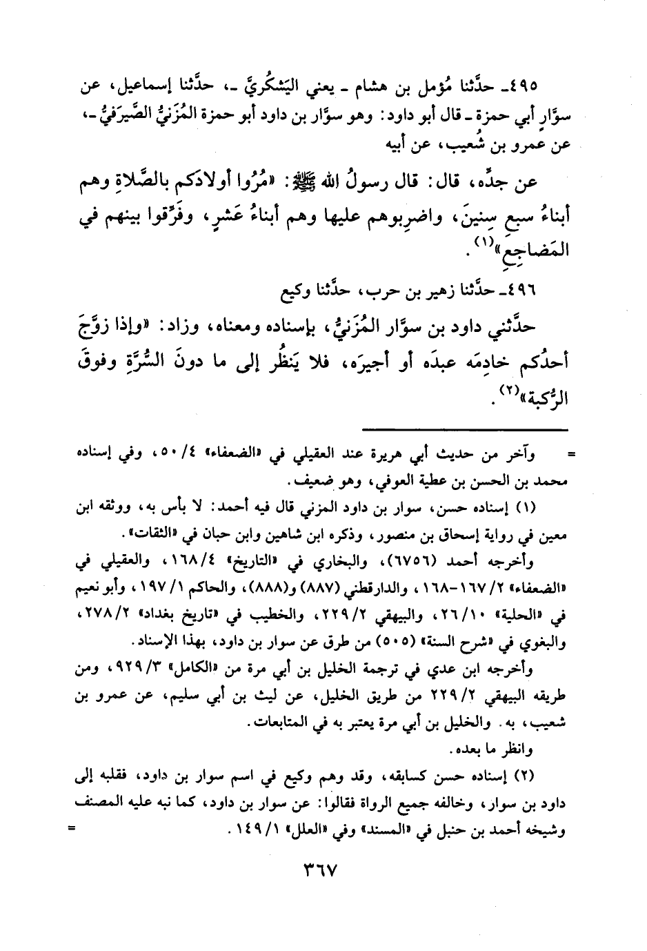 ٤٩٥ - حدَّثنا مُؤمل بن هشام -يعني اليَشكُري-، حدَّثنا إسماعيل، عن سوّارٍ أبي حمزة -قال أبو داود: وهو سوّار بن داود أبو حمزة المُزَني الصيرَفيُّ-، عن عمرو بن شُعيب، عن أبيه