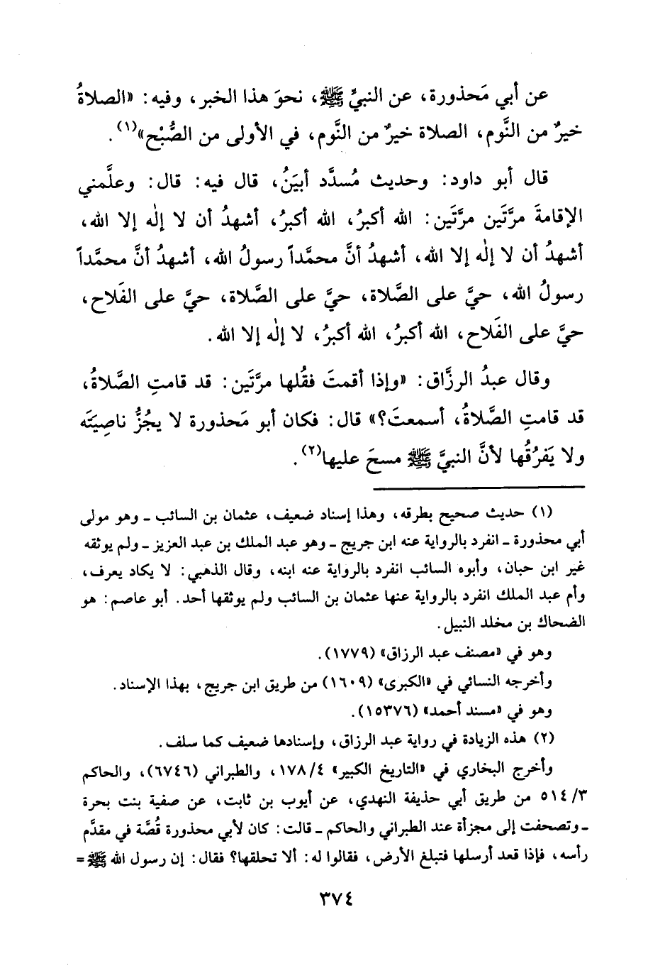 عن أبي مَحذورة، عن النبيّ - صلى الله عليه وسلم -، نحوَ هذا الخبر، وفيه: "الصلاةُ خيرٌ من النوم، الصلاة خير من النَّوم، في الأولى من الصُّبْح" (¬١).