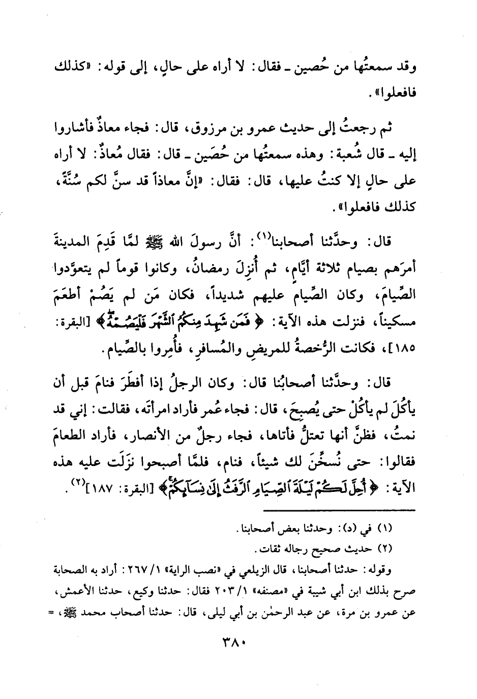وقوله: حدَّثنا أصحابنا، قال الزيلعي في "نصب الراية" ١/ ٢٦٧: أراد به الصحابة صرح بذلك ابن أبي شيبة في "مصنفه" ١/ ٢٠٣ فقال: حدَّثنا وكيع، حدَّثنا الأعمش، عن عمرو بن مرة، عن عبد الرحمن بن أبي ليلى، قال: حدَّثنا أصحاب محمَّد -صلى الله عليه وسلم -,=