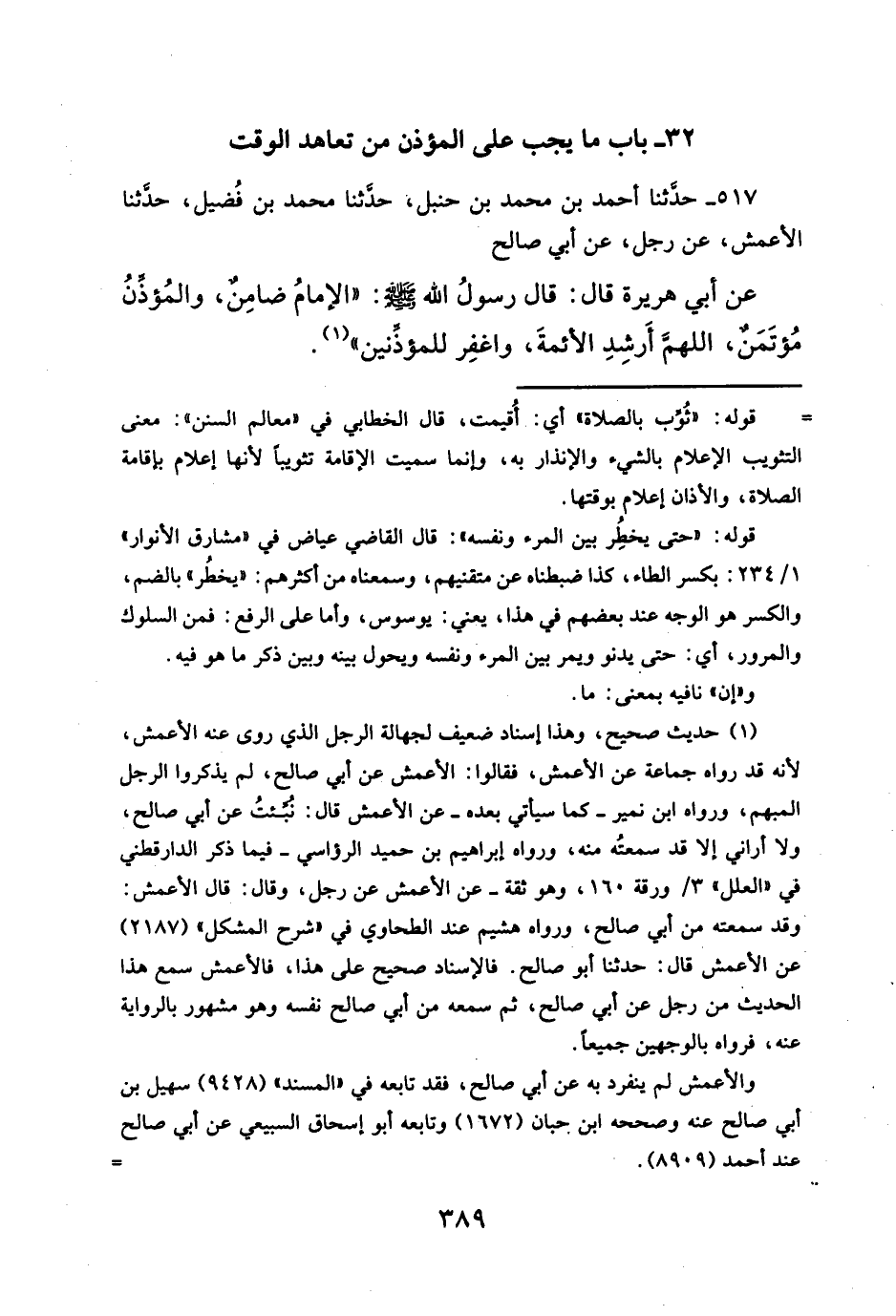 ٥١٧ - حدَّثنا أحمد بن محمَّد بن حنبل, حدَّثنا محمَّد بن فُضيل، حدَّثنا الأعمش، عن رجل، عن أبي صالح