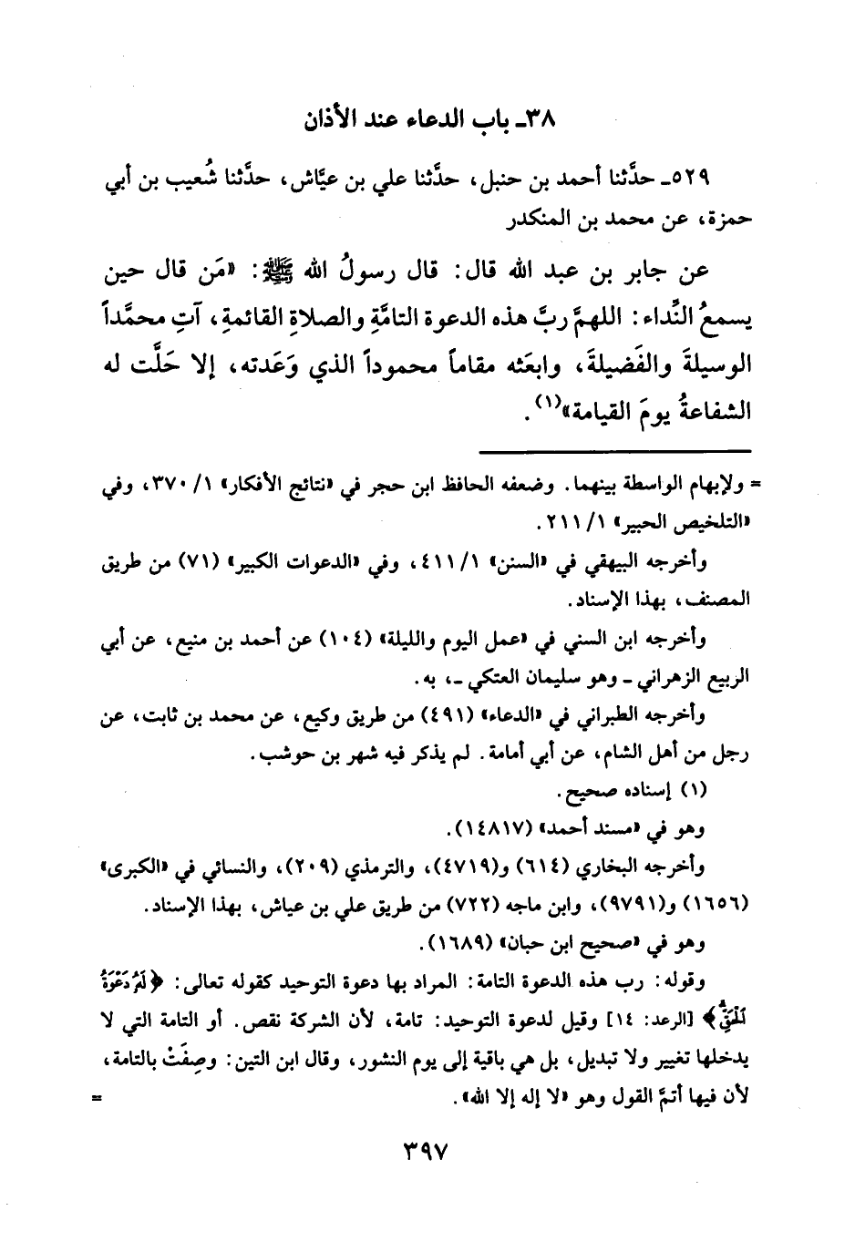 ٣٨ - باب الدعاء عند الأذان