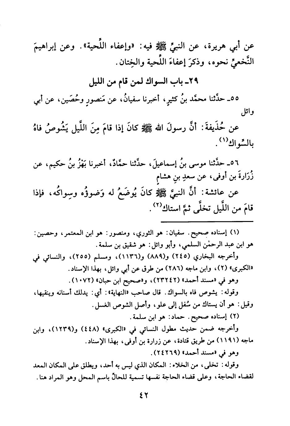 عن حُذَيفةَ: أنَّ رسولَ الله - صلى الله عليه وسلم - كانَ إذا قامَ مِنَ اللَّيل يَشُوصُ فاهُ بالسِّواك (¬١).