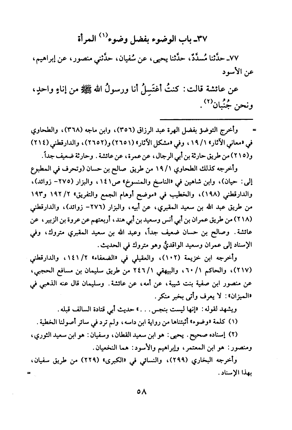 ٧٧ - حدَّثنا مُسدَّدٌ، حدَّثنا يحيى، عن سُفيان، حدثني منصور، عن إبراهيم، عن الأسود