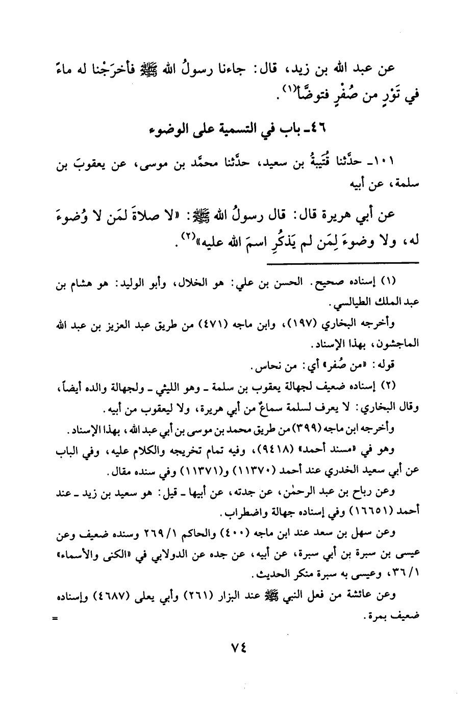٤٦ - باب في التسمية على الوضوء