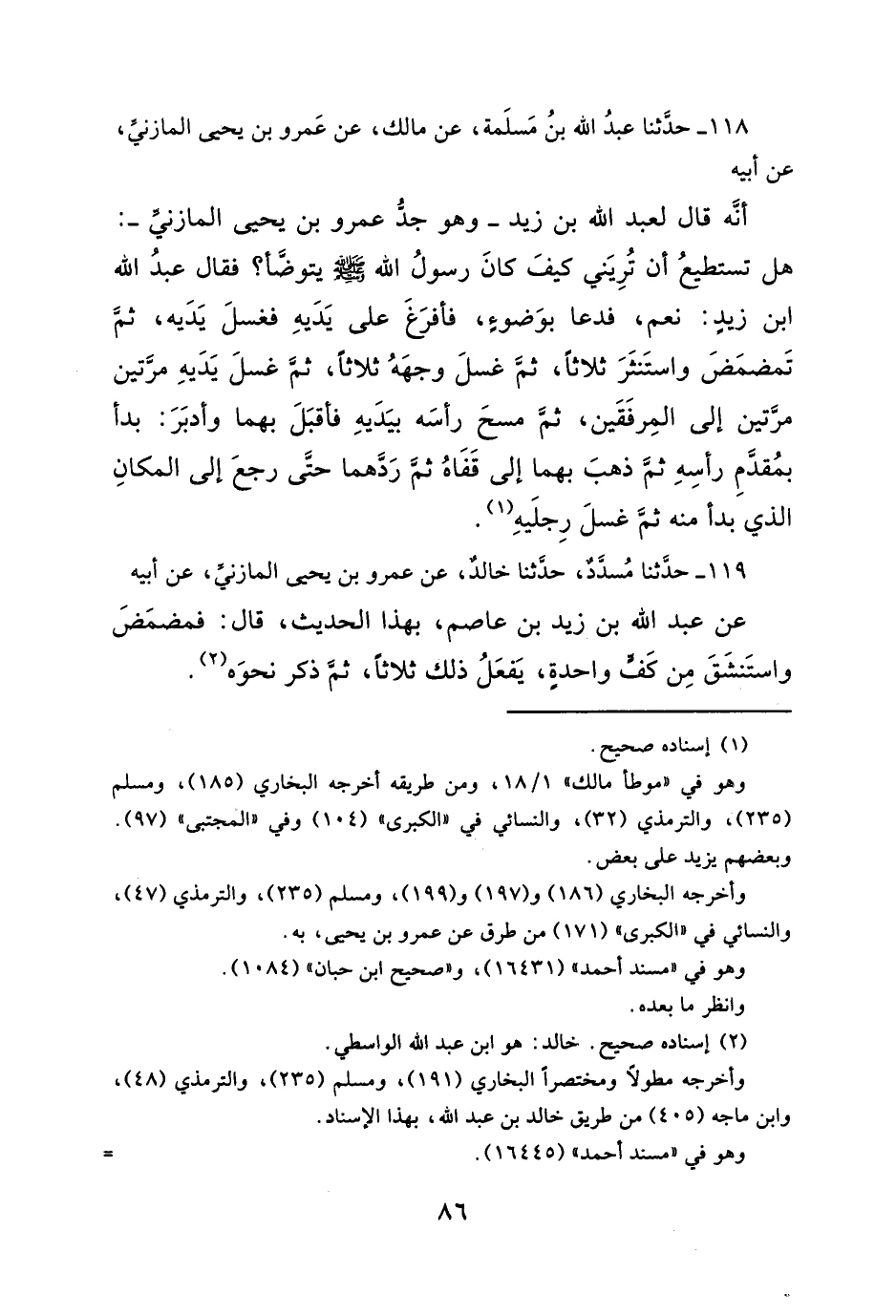 ١١٨ - حدَّثنا عبدُ الله بنُ مَسلَمة، عن مالك، عن عَمرو بن يحيى المازنيِّ، عن أبيه