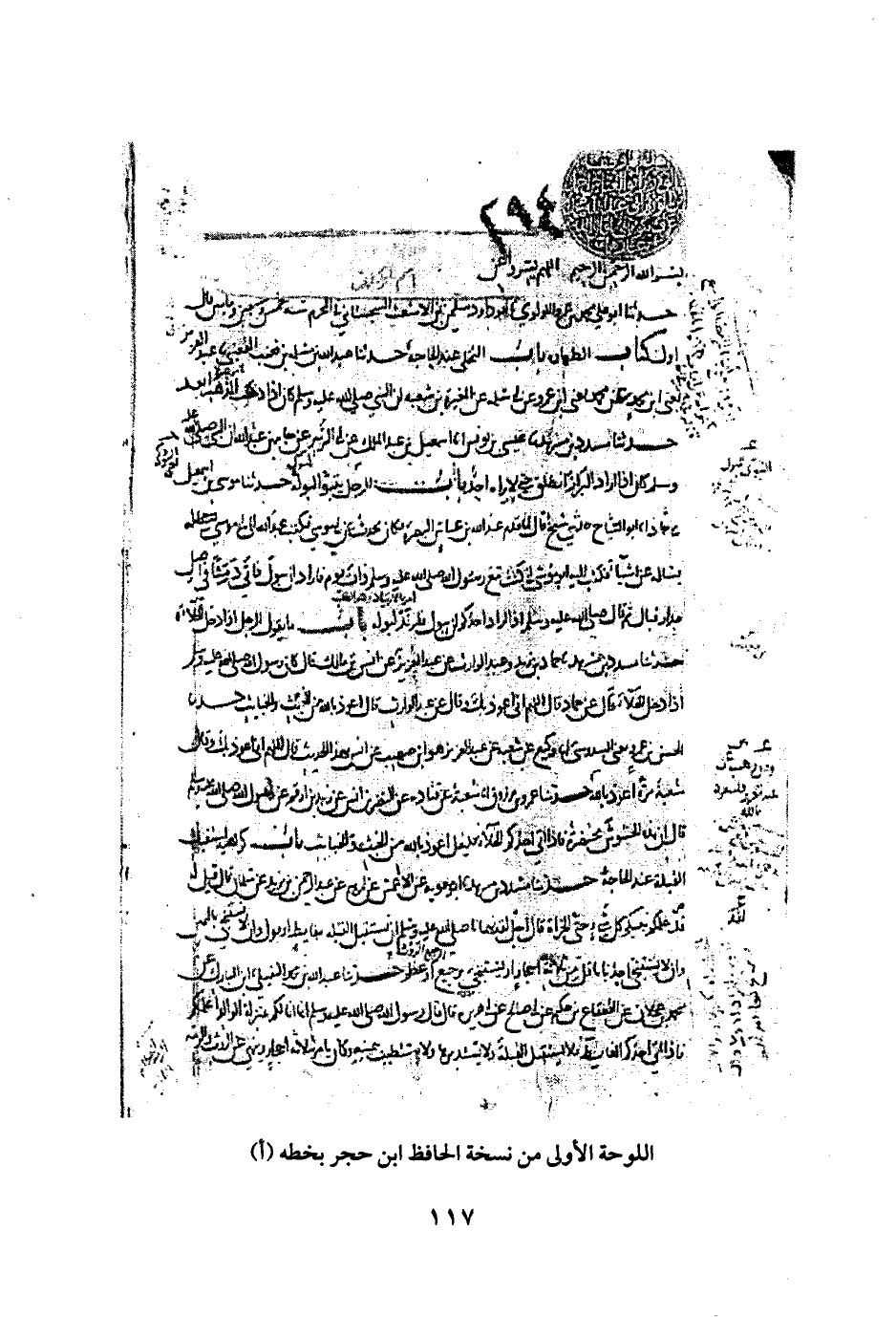 اللوحة الأولي من نسخة الحافظ ابن حجر بخطه (أ)