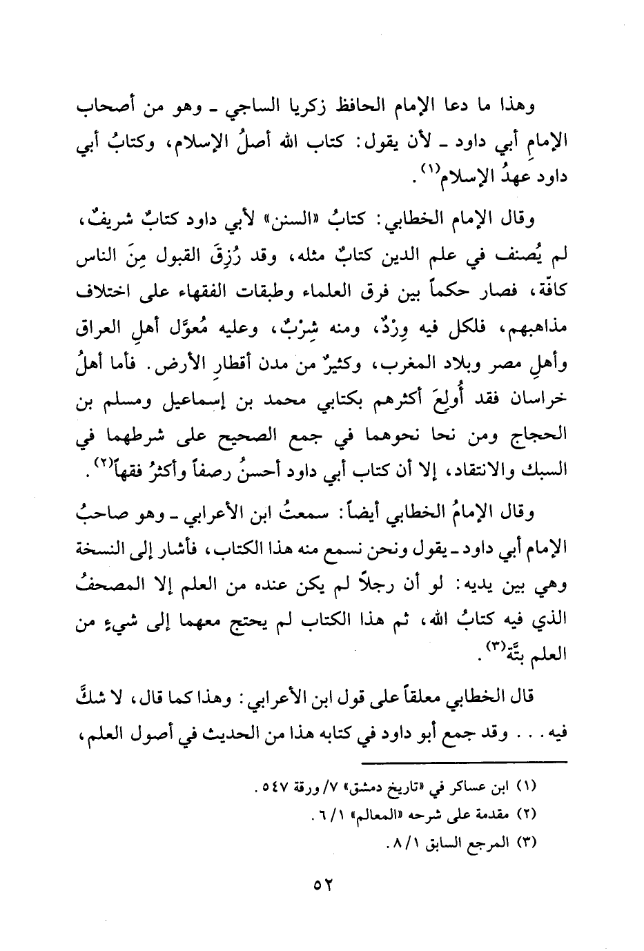 وهذا ما دعا الإمام الحافظ زكريا الساجي -وهو من أصحاب الإمامِ أبي داود- لأن يقول: كتاب الله أصلُ الإسلام، وكتابُ أبي داود عهدُ الإسلام (¬١).