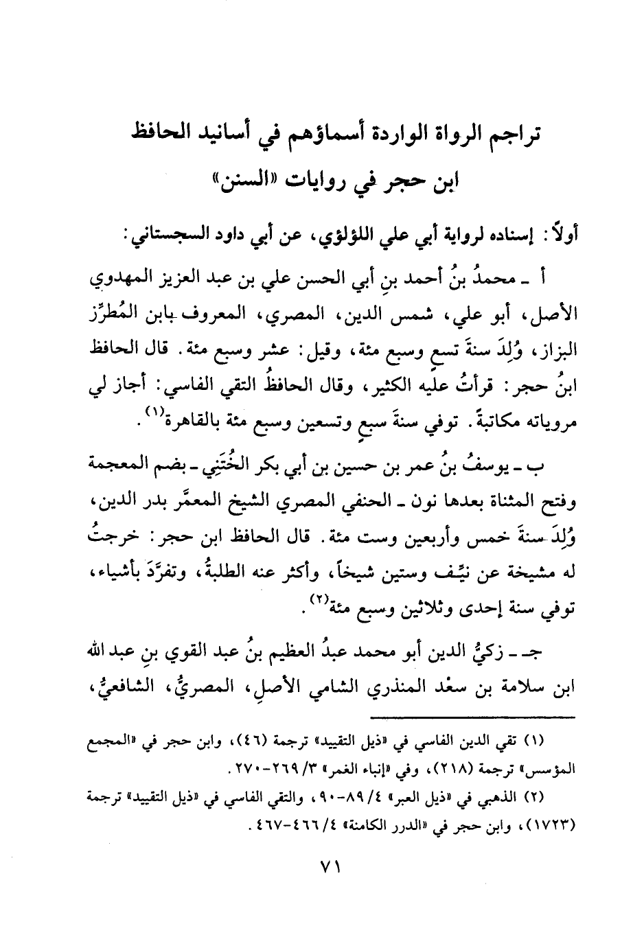 تراجم الرواة الواردة أسماؤهم في أسانيد الحافظ ابن حجر في روايات "السنن"