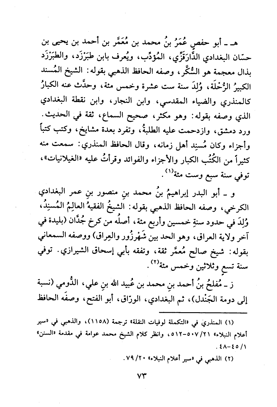(¬١) المنذري في "التكملة لوفيات النقلة" ترجمة (١١٥٨)، والذهبي في "سير أعلام النبلاء" ٢١/ ٥٠٧ - ٥١٢، وانظر كلام الشيخ محمد عوامة في مقدمة "السنن" ١/ ٤٥ - ٤٨.