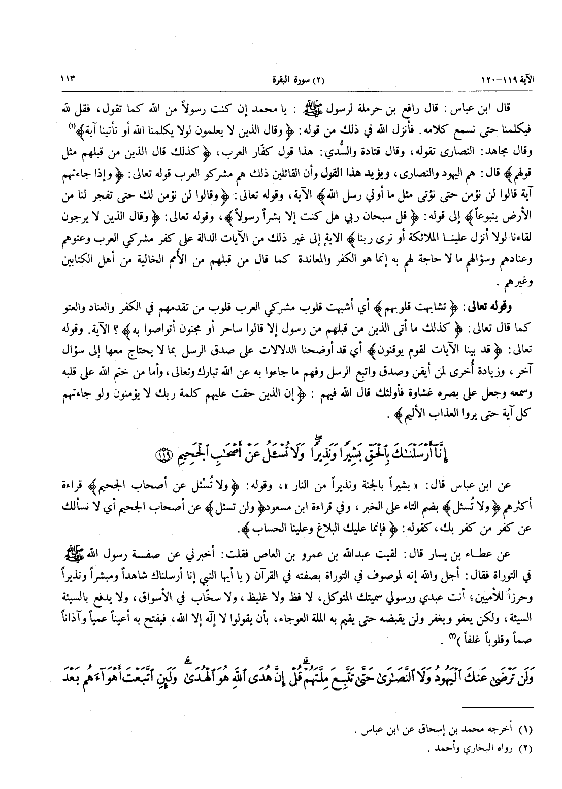 - 119 - إِنَّآ أَرْسَلْنَاكَ بِالْحَقِّ بَشِيرًا وَنَذِيرًا وَلاَ تُسْأَلُ عَنْ أصحاب الجحيم