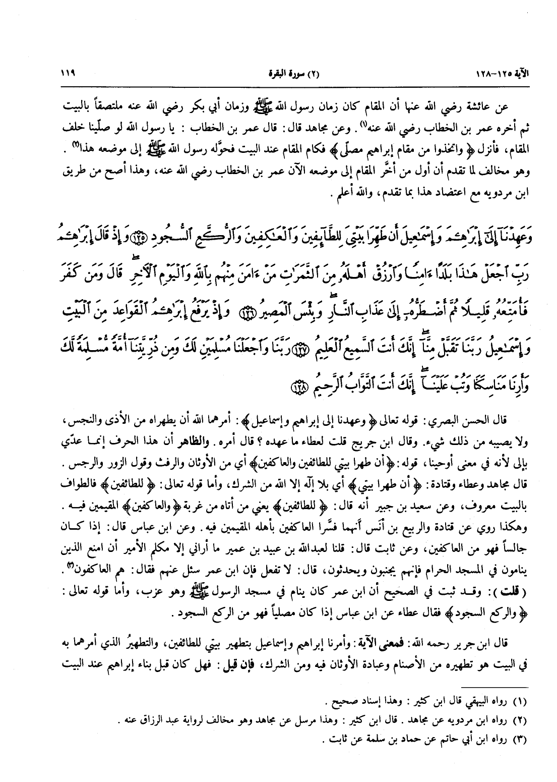 تتمة الآية (125): وَعَهِدْنَآ إِلَى إِبْرَاهِيمَ وَإِسْمَاعِيلَ أَن طَهِّرَا بَيْتِيَ لِلطَّائِفِينَ وَالْعَاكِفِينَ وَالرُّكَّعِ السُّجُودِ