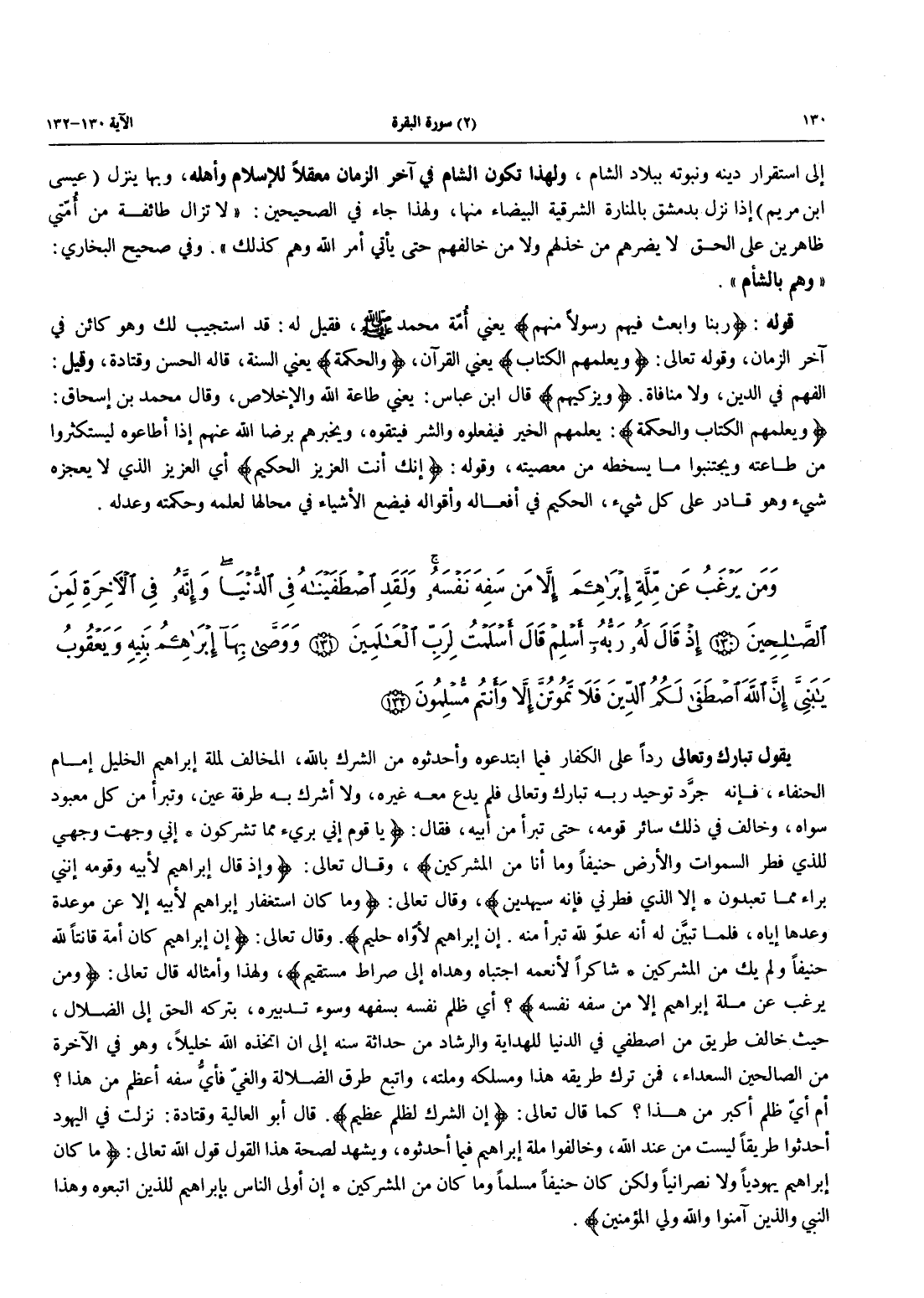 - 130 - وَمَن يَرْغَبُ عَن مِّلَّةِ إِبْرَاهِيمَ إِلاَّ مَن سَفِهَ نَفْسَهُ وَلَقَدِ اصْطَفَيْنَاهُ فِي الدُّنْيَا وَإِنَّهُ فِي الْآخِرَةِ لَمِنَ الصَّالِحِينَ
