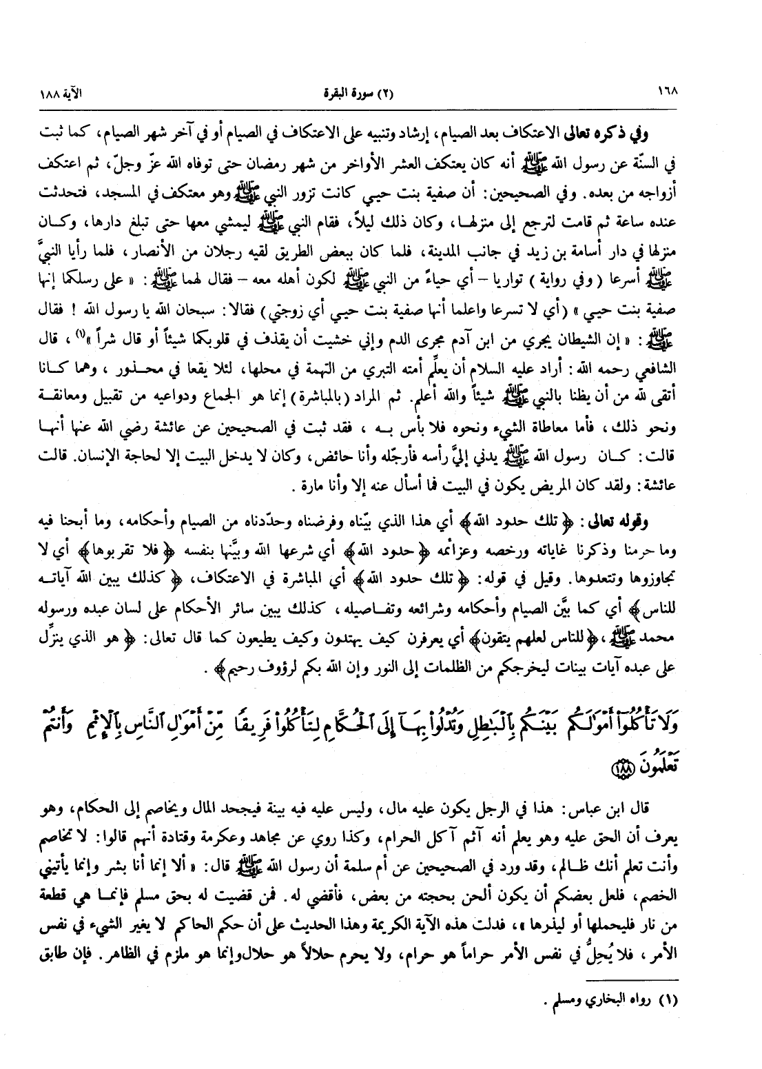 - 188 - وَلَا تَأْكُلُوا أَمْوَالَكُمْ بَيْنَكُمْ بِالْبَاطِلِ وَتُدْلُواْ بِهَا إِلَى الْحُكَّامِ لِتَأْكُلُواْ فَرِيقاً مِنْ أَمْوَالِ النَّاسِ بالإثم وَأَنْتُمْ تَعْلَمُونَ