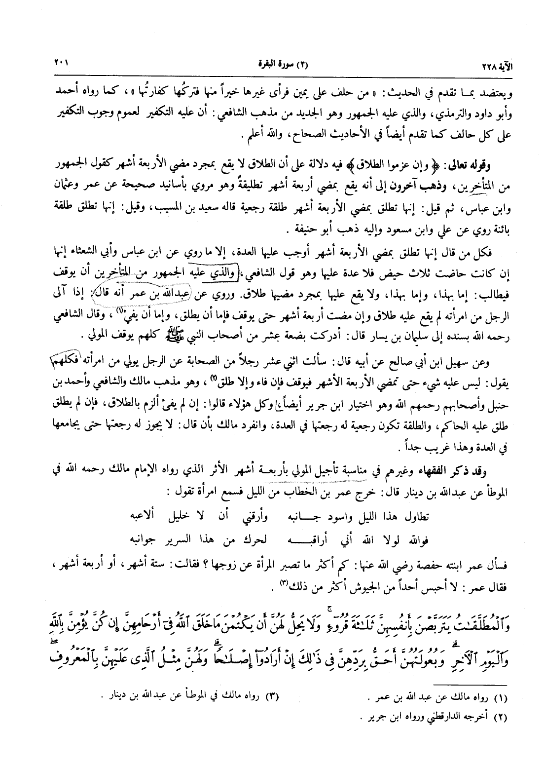 - 228 - وَالْمُطَلَّقَاتُ يَتَرَبَّصْنَ بِأَنْفُسِهِنَّ ثَلَاثَةَ قُرُوءٍ وَلاَ يَحِلُّ لَهُنَّ أَن يَكْتُمْنَ مَا خَلَقَ اللَّهُ فِي أَرْحَامِهِنَّ إِن كُنَّ يُؤْمِنَّ بِالْلَّهِ وَالْيَوْمِ الْآخِرِ وَبُعُولَتُهُنَّ أَحَقُّ بِرَدِّهِنَّ فِي ذَلِكَ إِنْ أَرَادُوا إِصْلَاحًا وَلَهُنَّ مِثْلُ الَّذِي عَلَيْهِنَّ بِالْمَعْرُوفِ -[202]- وَلِلرِّجَالِ عَلَيْهِنَّ دَرَجَةٌ والله عَزِيزٌ حَكِيمٌ