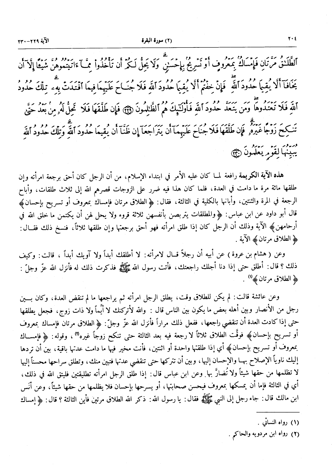 - 229 - الطَّلَاقُ مَرَّتَانِ فَإِمْسَاكٌ بِمَعْرُوفٍ أَوْ تَسْرِيحٌ بِإِحْسَانٍ وَلاَ يَحِلُّ لَكُمْ أَن تَأْخُذُواْ مِمَّآ آتَيْتُمُوهُنَّ شَيْئاً إِلاَّ أَن يَخَافَآ أَلاَّ يُقِيمَا حُدُودَ اللَّهِ فَإِنْ خِفْتُمْ أَلاَّ يُقِيمَا حُدُودَ اللَّهِ فَلَا جُنَاحَ عَلَيْهِمَا فِيمَا افْتَدَتْ بِهِ تِلْكَ حُدُودُ اللَّهِ فَلاَ تَعْتَدُوهَا وَمَن يَتَعَدَّ حُدُودَ اللَّهِ فَأُولَئِكَ هُمُ الظَّالِمُونَ